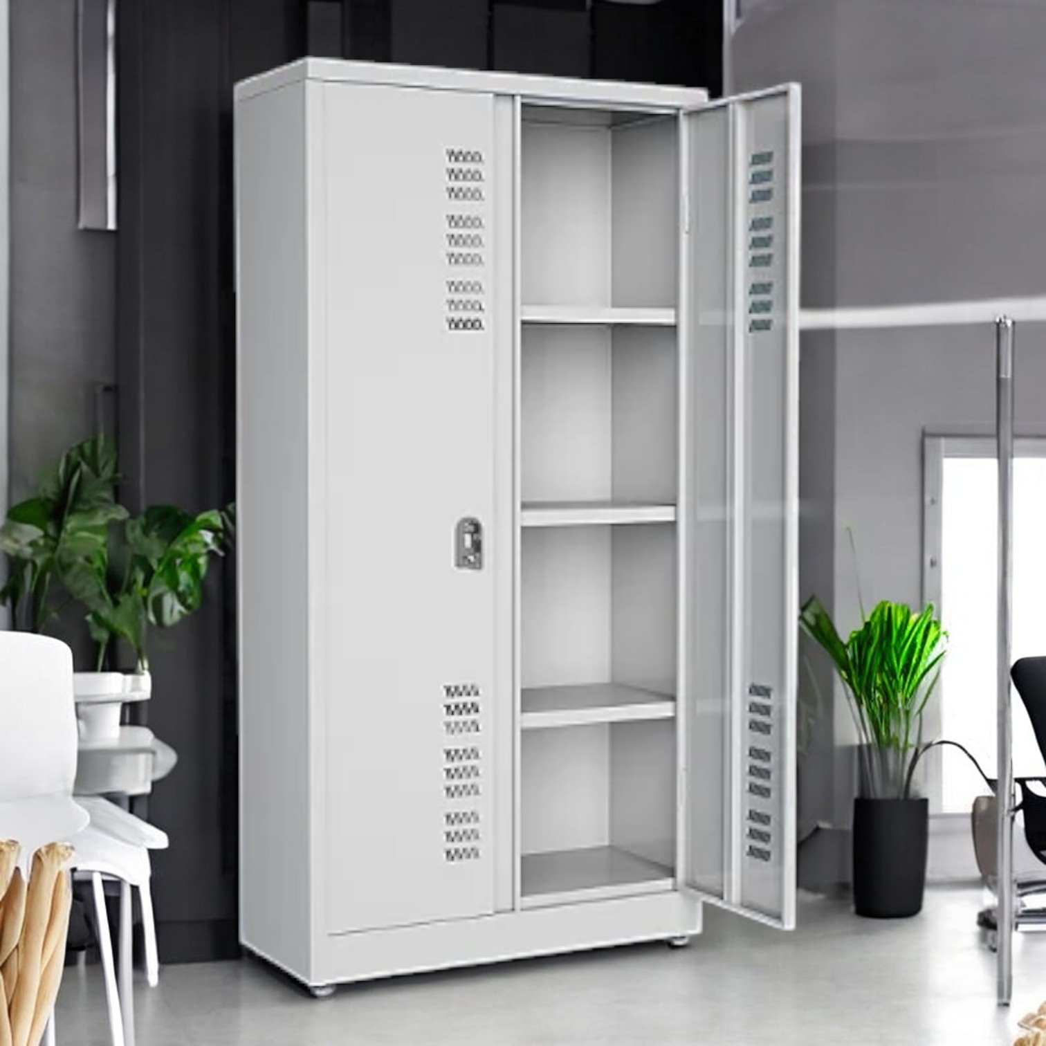 Este Produto é ideal para escritórios, almoxarifados, laboratórios, hospitais, farmácias, depósitos, academias, supermercados, vestiários, entre outros ambientes.