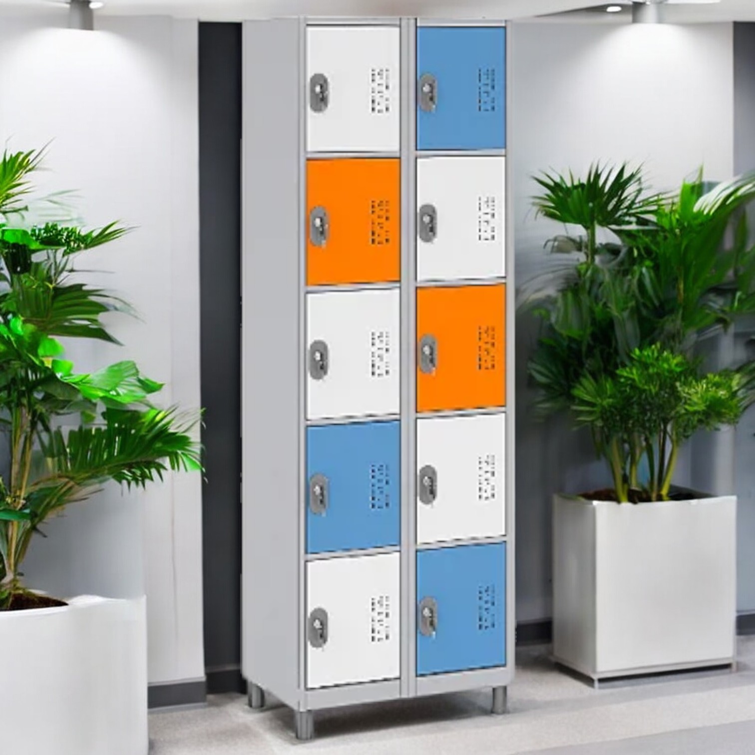 Armário multiuso de aço guarda volumes 10 portas pequenas, fabricado em aço chapa 26 ou 24 com dobradiças metálicas e portas com ventilação antimofo, alguns modelos fornecem porta etiqueta estampado na porta. Esses armários roupeiro de aço são disponibilizados em 4 formatos: Colunas com 2 portas grandes sobrepostas, 4 portas pequenas sobrepostas, 3 portas médias sobrepostas e 5 portas mini sobrepostas. Os módulos prontos são fornecidos em múltiplos de 2 portas grandes (2,4,6 e 8 portas), 4 portas pequenas (4,8,12 e 16 portas), 3 portas médias (9 e 12 portas) ou 5 portas mini (20 portas). O roupeiro de aço para vestiário 10 portas pequenas da marca W3 é fabricado nas medidas 190x62.5x36, comporta até 60% dos modelos de capacetes fabricados, além de ser ideal para proteção e segurança de objetos e pertences de volume pequeno a médio como bolsas, roupas, casacos, mochilas e sapatos. O roupeiro para vestiário de aço é indicado para atender as necessidades de armazenamento de pertences pessoais de funcionário em fábricas, de visitantes em hospitais e ainda para alunos e funcionários de academias.