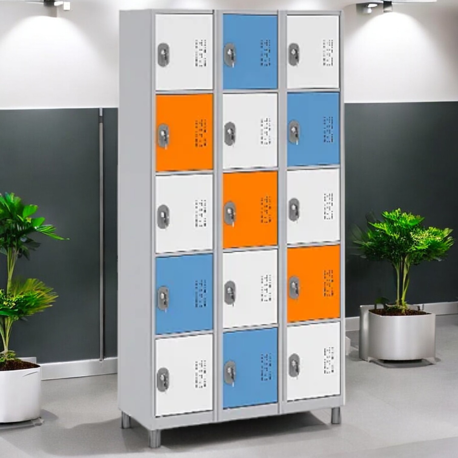 Armário multiuso de aço guarda volumes 15 portas pequenas, fabricado em aço chapa 26 ou 24 com dobradiças metálicas e portas com ventilação antimofo, alguns modelos fornecem porta etiqueta estampado na porta. O roupeiro de aço para vestiário 15 portas pequenas da marca W3 é fabricado nas medidas 190x97x40, comporta até 60% dos modelos de capacetes fabricados, além de ser ideal para proteção e segurança de objetos e pertences de volume pequeno a médio como bolsas, roupas, casacos, mochilas e sapatos. O roupeiro para vestiário de aço é indicado para atender as necessidades de armazenamento de pertences pessoais de funcionário em fábricas, de visitantes em hospitais e ainda para alunos e funcionários de academias.