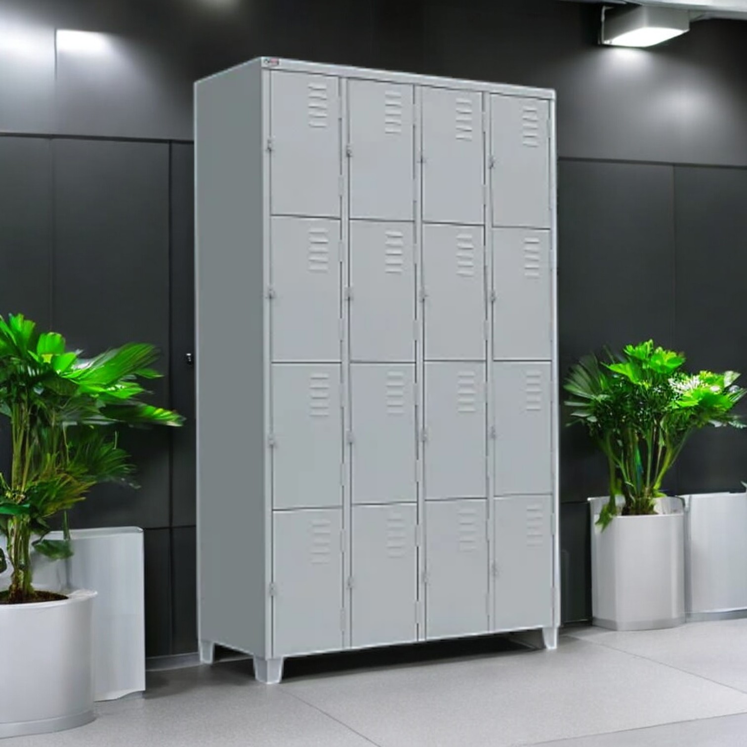 Armário multiuso de aço guarda volumes 16 portas pequenas, fabricado em aço chapa 26 com dobradiças metálicas e portas com ventilação antimofo, alguns modelos fornecem porta etiqueta estampado na porta. O roupeiro de aço para vestiário 16 portas pequenas da marca Shopping do Aço é fabricado nas medidas 198x122.5x40, comporta até 80% dos modelos de capacetes fabricados, além de ser ideal para proteção e segurança de objetos e pertences de volume pequeno a médio como bolsas, roupas, casacos, mochilas e sapatos. O roupeiro para vestiário de aço é indicado para atender as necessidades de armazenamento de pertences pessoais de funcionário em fábricas, de visitantes em hospitais e ainda para alunos e funcionários de academias.